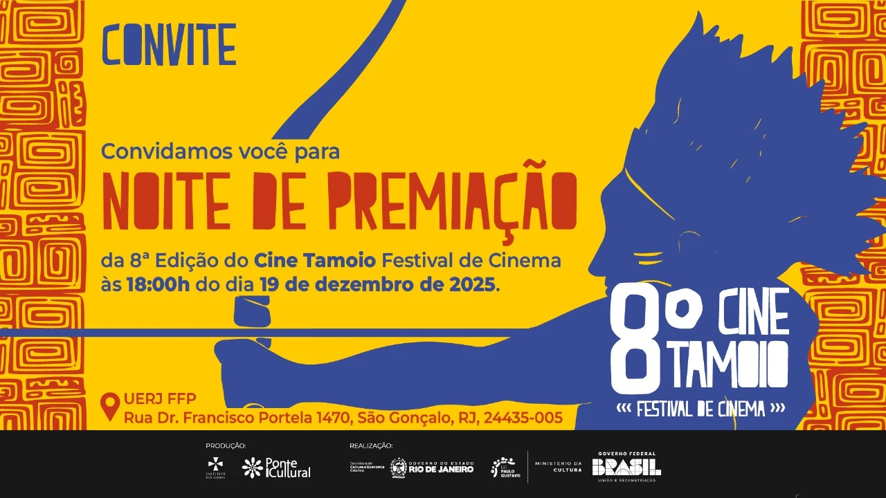 A noite de premiação do Cine Tamoio – Festival de Cinema acontece no dia 19 de dezembro, às 18h, no auditório da FFP/UERJ – Faculdade de Formação de Professores, em São Gonçalo. Com entrada gratuita, o evento marca o encerramento de mais uma edição do festival, reafirmando seu compromisso com a democratização do acesso ao cinema e a valorização do audiovisual brasileiro.